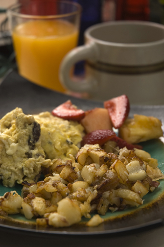 This weekend I had the privilege of being served undoubtedly the best breakfast potatoes I’ve tasted; crispy on the outside, supremely garlic-y with bits of grated Parmesan fried to crunchy perfection– simply delicious. Served with eggs scrambled with hunks of steak and homemade orange juice, they were barely the star of this amazing meal.