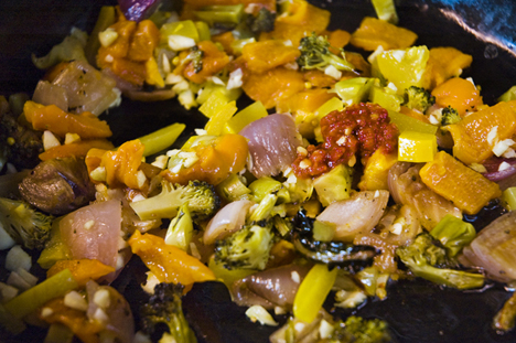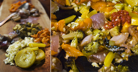 - broccoli and purple onion, either fresh or roasted