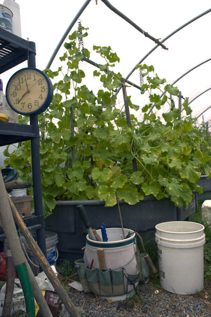 Another pile situated next to the row garden is last year’s pile and is in use for this year’s garden. No pesticides are used, only compost and about five pounds of organic fertilizer used sparingly the whole year.