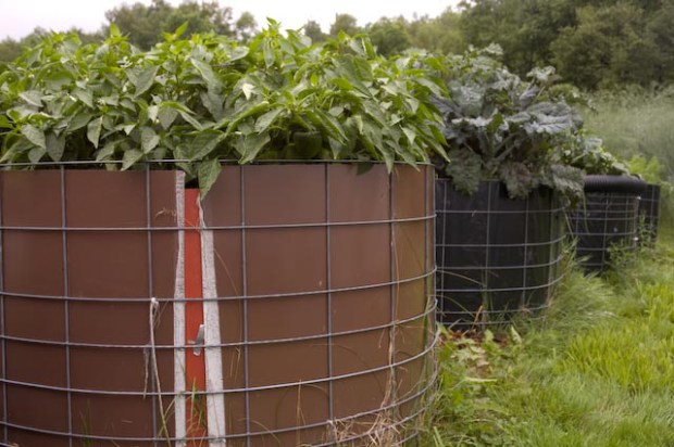 A unique feature of their garden is their raised beds, which resemble tubs that are about five feet in diameter. They use 16 feet of wire fencing, bend it into a circle, bolt it, and line it with “various things.”