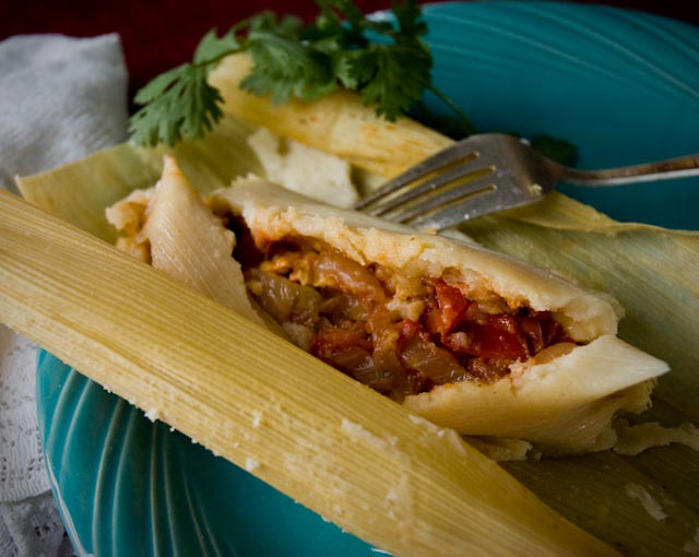 The tamale stand in my ‘hood is run by a mother & son from Oaxaca. The mother does the cooking, wrapping and steaming her tamales in corn husks after filling them with chicken in salsa verde, pork in salsa roja , picante queso & vegetables, or a sweet version studded with raisins.